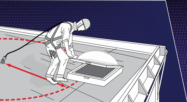 V případě práce na střechách nebo jiných konstrukcích se může používat záchytný systém proti pádu nebo zádržný systém. Pokud v případě práce na střechách hrozí, že by pracovník v případě pádu mohl narazit na nějakou překážku (jiná konstrukce, nižší střecha), tak se místo záchytného systému (který je určen k zachycení pádu) používá zádržný systém (který omezuje pohyb pracovníka a je instalován tak, aby k pádu nemohlo dojít).
