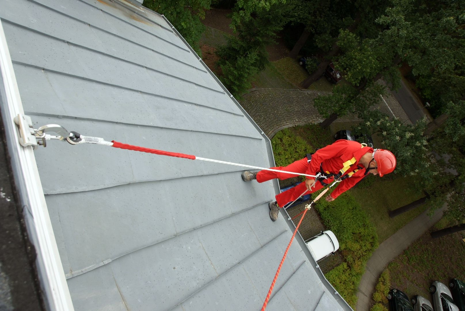 Podle legislativy musí být pohyblivý kotvící bod a záchytný systém proti pádu namontován na každou novou nebo opravovanou střechu.