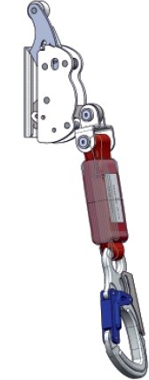 Obrázek: Zachycovač pádu SKC Block se zapíná do předního úchytu zachycovacího postroje uživatele a nasazuje se na 8mm lanko.Dle ČSN EN 363 tak tvoří systém ochrany osob proti pádu..
