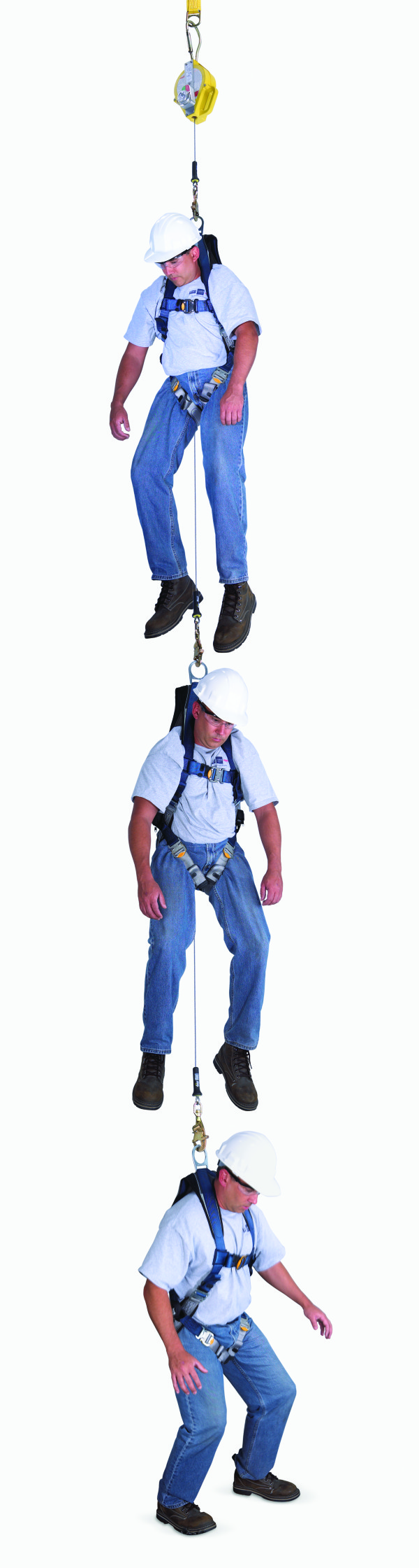 Zachycovač pádu se vysouvá a zatahuje spolu s uživatelem při výkonu jeho pracovního úkolu. V případě pádu se aktivuje brzdový systém se snímáním rychlosti, který pád zastaví a sníží síly působící na uživatele na bezpečnou úroveň. Kromě toho je lanko neustále napnuté, což pomáhá snižovat tahání, zachycování, zakopnutí a pády.